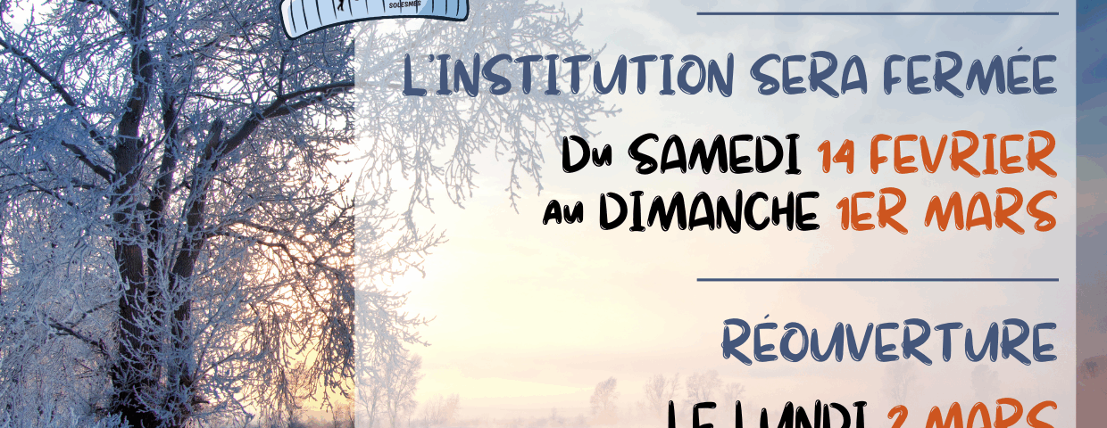 À l’occasion des vacances d’hiver, l’Institution St Michel sera fermée du samedi 14 février au dimanche 1er mars inclus.