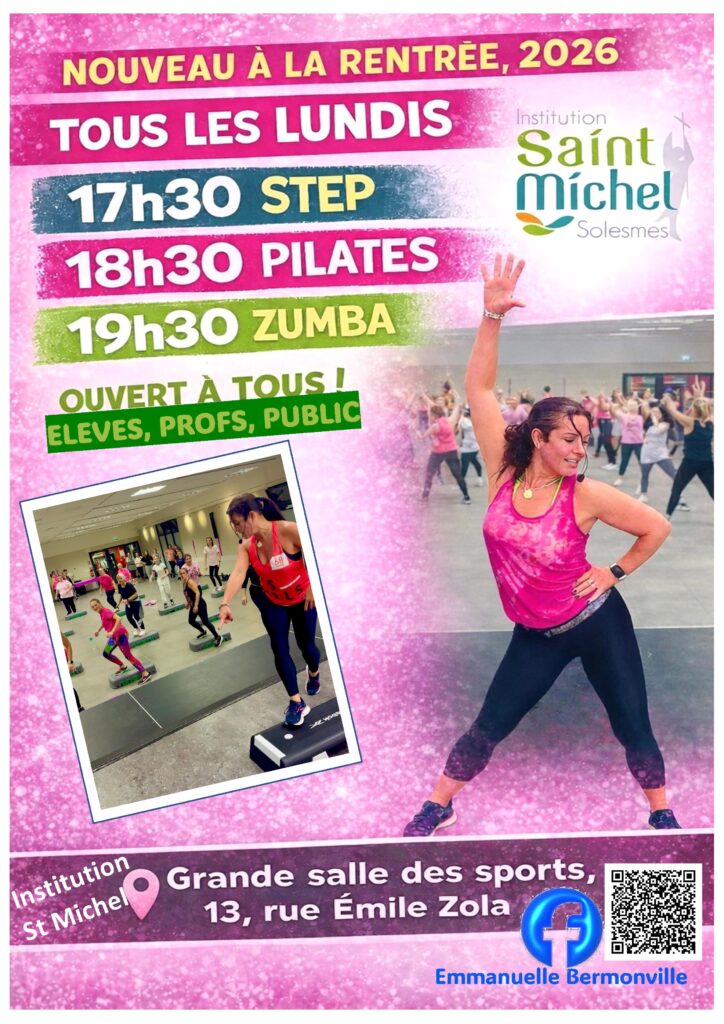Ces séances seront animées par Emmanuelle Bermonville, ancienne élève de l’Institution et coach sportive professionnelle.