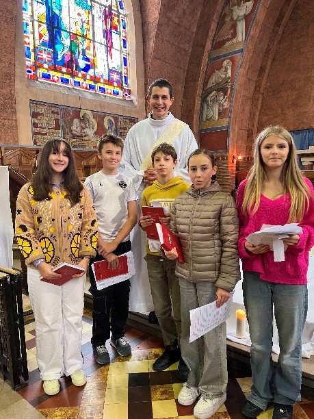Juste avant les vacances de la Toussaint, Victoire, Julie, Agathe, Tom et Enzo ont franchi une étape clé dans leur préparation au baptême en vivant leur entrée en catéchuménat.